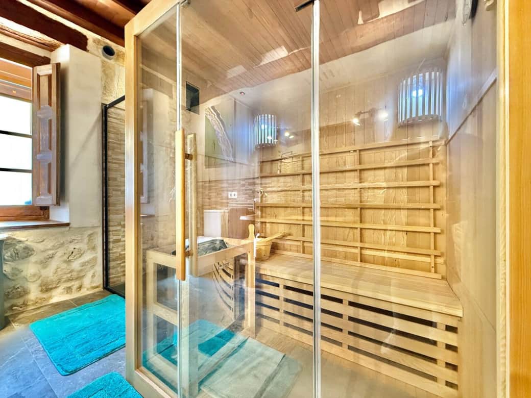 Baño amplio en la primera planta con sauna para dos personas. Un espacio cómodo y luminoso que aporta un extra de bienestar durante la estancia.