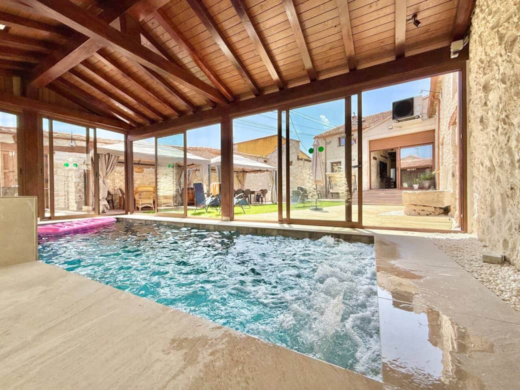 Casa Villa Rosalía es una amplia casa rural en Hontalbilla, Segovia, ideal para familias y grupos. Dispone de 6 dormitorios, 3 baños completos y zonas comunes luminosas y acogedoras. Su gran atractivo es la piscina cubierta y climatizada, perfecta para disfrutar en cualquier época del año. El patio con barbacoa, el jardín y los espacios abiertos invitan a relajarse y compartir momentos inolvidables en un entorno tranquilo y auténtico, muy cerca de Segovia capital.